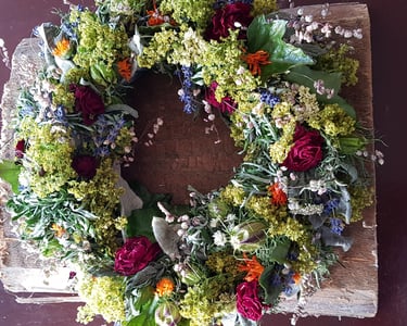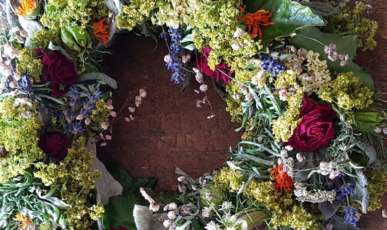 In meiner Veranstaltung „Wildkräuterkränze binden“ biete ich dir eine entspannte, kreative Zeit voller Wohlfühlmomente. Gemeinsam tauchen wir in die Welt der Wildblumen und Kräuter ein. Zuerst lernen wir geeignete Pflanzen kennen und sammeln sie in der Natur. Anschließend binden wir in geselliger Runde wunderschöne Wildkräuterkränze – auf Wunsch auch Blumensträuße. Diese Zeit lädt zum Entschleunigen ein und verbindet Kreativität mit der Kraft der Natur. Lass dich inspirieren und gestalte dein eigenes, natürliches Kunstwerk!